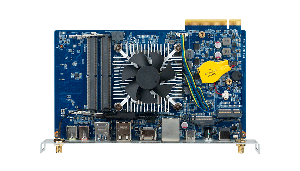 优秀的视频显示,球速体育科技SDM-L613拥有1个HDMI (7680 x 4320 @60 Hz)接口,支持60HZ刷新率,实现8k超清显示,SDM(PCIE X8)可以传输 HDMI2.0 (4096 x 2304 @60 Hz)、DP1.2 (4096 x 2304 @60 Hz)、USB3.2 Gen1、UART、GSPI、I2C、PCIe 和 SYS_FAN 信号连接。