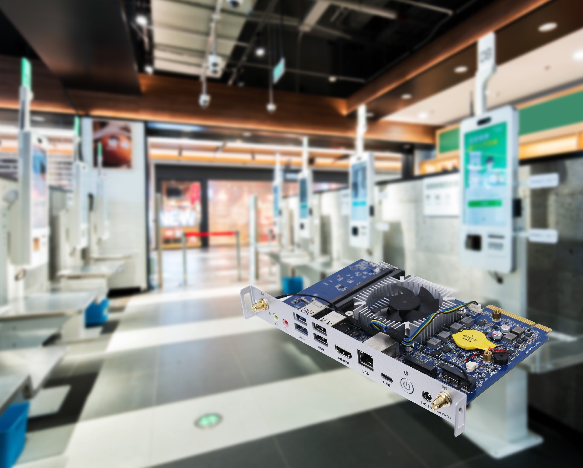 球速体育科技SDM-L613支持2xSO-DIMM DDR5-5200 MHZ,最大支持64GB,结合1 x M-Key M.2 (2280) PCIe4.0高速NVMe SSD,DDR5工作频率通常比DDR4更高,可以在单位时间内处理更多的数据,并且耗能更低,对于像自助机这样长时间运行且需要稳定散热的设备来说,节能和散热效果更好的内存可以降低设备的能耗和热量排放。