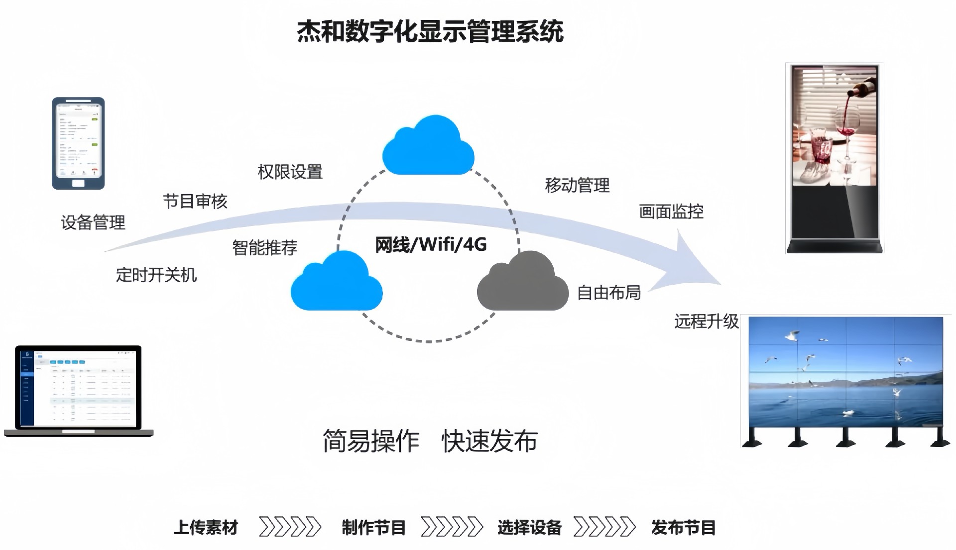 目前球速体育科技GDSM-ES系统覆盖市场上多形态网络智能显示终端,满足行业全产品业态需求,如广告机、LED显示屏、LCD拼接屏 、普通液晶电视等各种显示终端,广泛用于广告宣传、通知公告、指示引导。