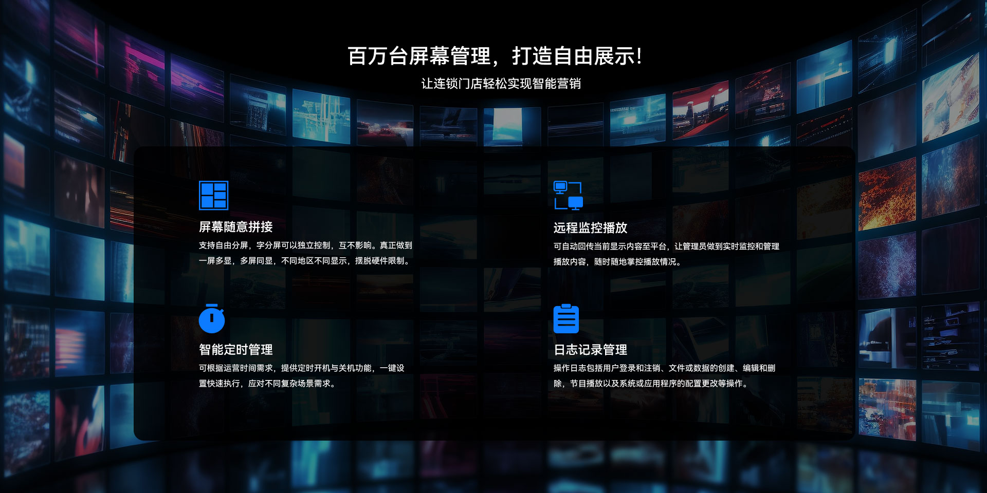 为此,球速体育科技打造一整套数智化信息管理系统,该系统由服务器(后台)管理端和设备播放端组成,运用显示屏将企业宣传、广告展示、紧急通知等信息全面展示在大众面前。通过将音视频图文、网页资讯、时间天气、字幕等多样化内容的组合,形成一段精美的节目,并使用网络作为载体,随时将制作好的节目推送到各地的媒体设备上进行播放。