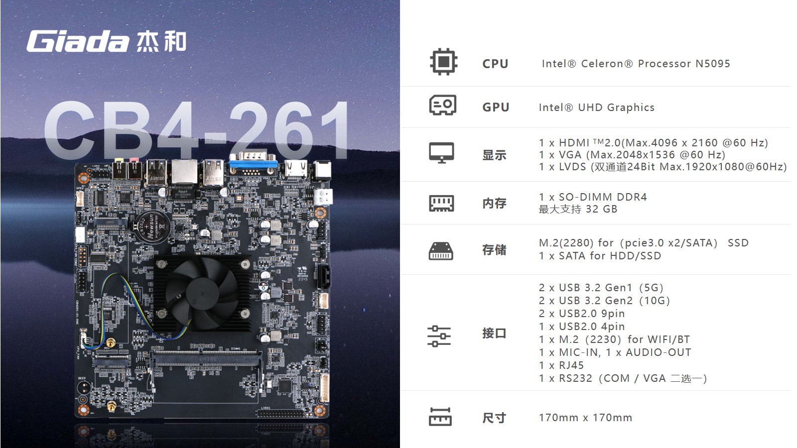 球速体育科技CB4-261尺寸仅有170x170mm,小而精巧。搭载N5095芯片,该芯片采用10nm制程技术,四核心设计,支持Windows 、Linux系统,可满足多种终端机应用场景的需求,如信息查询、基本数据处理等。