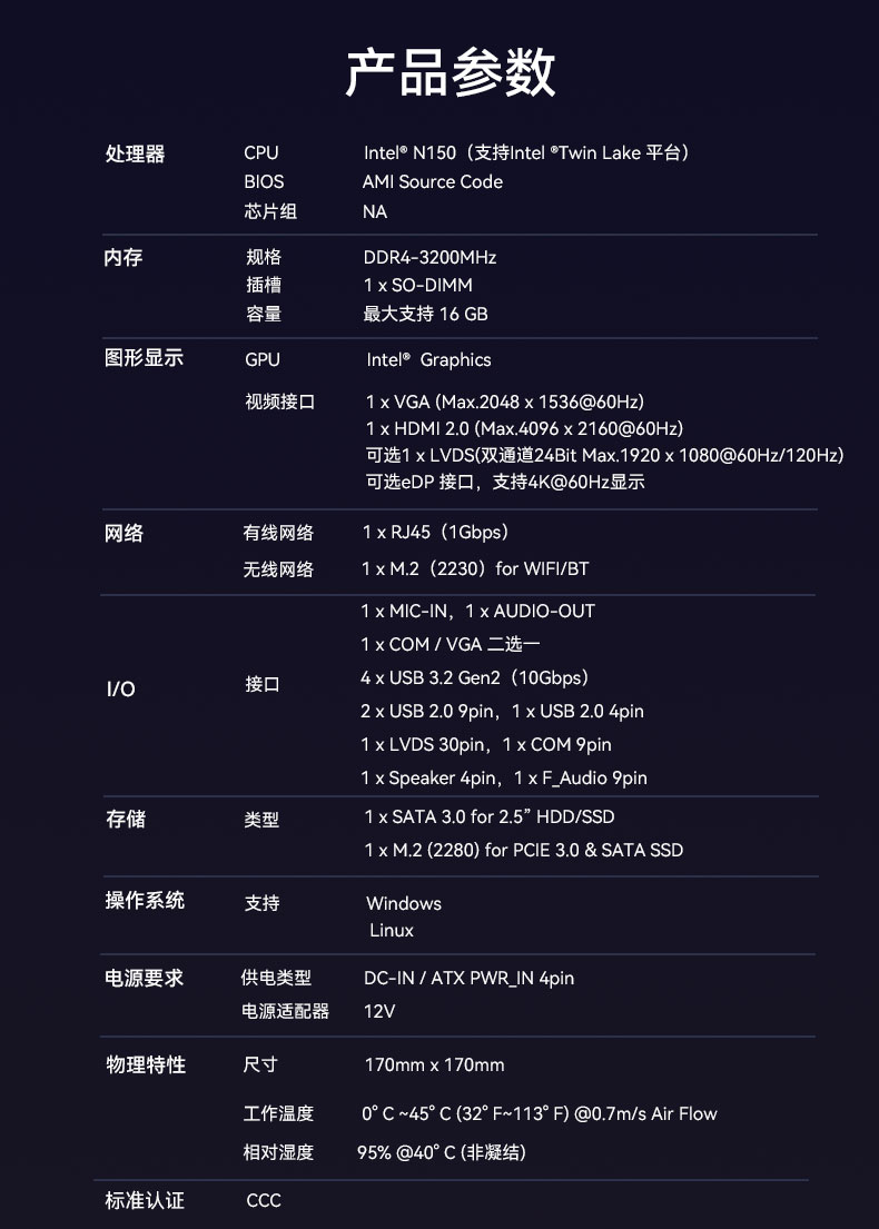 搭载英特尔N150处理器的一体机主板CB4-209-V0已正式上市,球速体育不仅提供高稳定性的主板,更配备专业完善的售前售后服务体系,客户在购买、安装、使用主板过程中遇到任何问题,可以联系球速体育科技技术支持团队,获得专业的解答和指导。