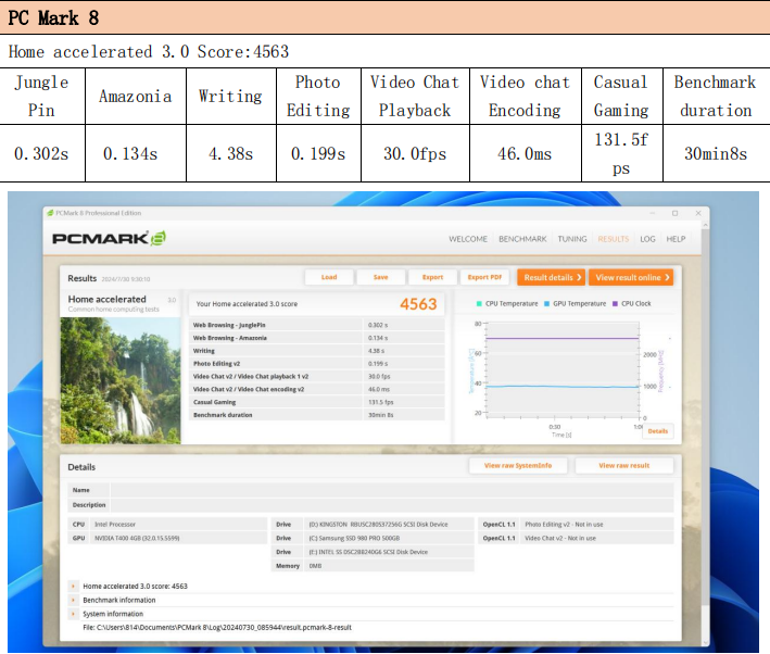 在3DMark Vantage中,Performance模式下GPU得分为19580,High模式得分为13467。该测试反映了设备在不同画质等级下的图形处理能力,从这两个成绩来看,WA814能够轻松胜任4K剪辑、三维建模、动画制作等高负载任务。