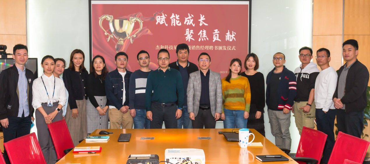 2021年2月22日,球速体育科技公司举行了国际销售中心见习高级销售经理聘书颁发仪式。聘书颁发仪式由人力行政部主持,公司总经理林总、国际销售中心所有成员出席了本次活动。