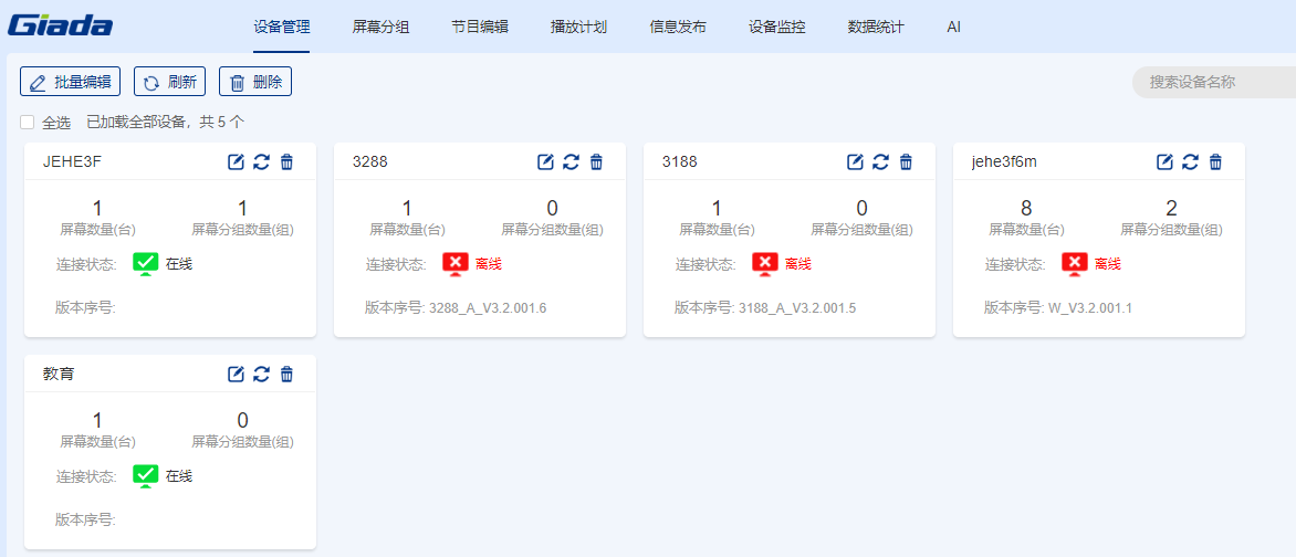 如需要对实时画面进行查看,进入设备监控界面,系统可对单组单组屏幕的播放内容进行实时抓取,每5秒刷新;
