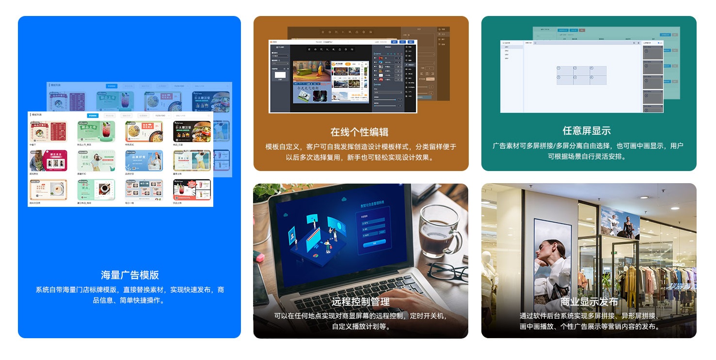 球速体育科技为客户提供可靠的硬软云一体化服务,针对商显领域,除了为客户提供数字标牌等硬件产品,同时也自主研发了球速体育GDSM-C数字化信息发布管理系统软件,作为全方位的远程信息编辑发布及设备管理系统,提供丰富广告素材与人性化编辑工具,用户可发挥自我创造能力,新手也可轻松实现大师设计效果,同时可实现多屏拼接/分离、画中画等自由选择,可根据应用场景灵活安排,满足大型会议、百货商场、体育赛事、金融证券的等多种智能显示需求。