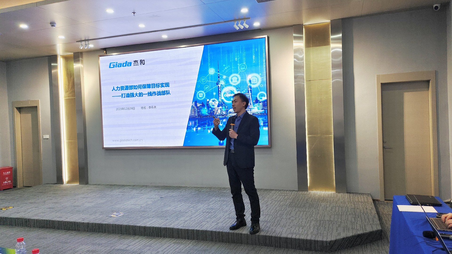 会议开始后,两位国际/国内营销中心负责人首先对2023年度经营工作作总结报告,并着重介绍2024年度销售目标与重点工作。