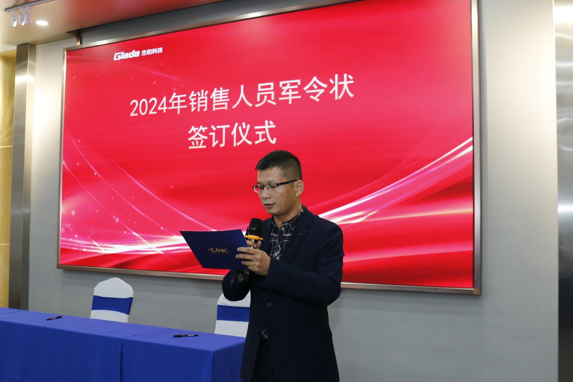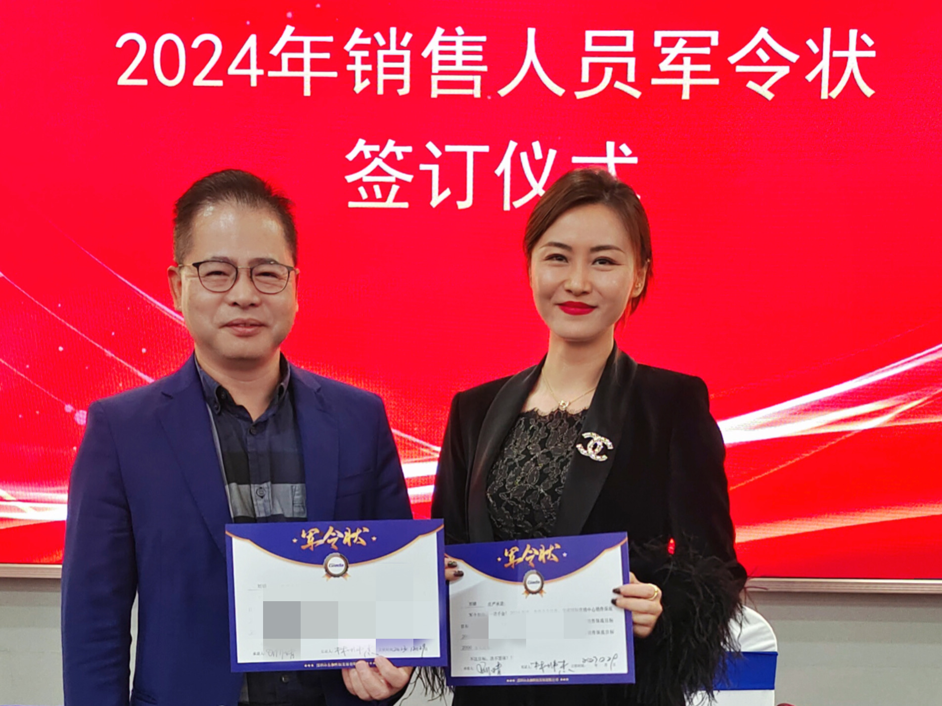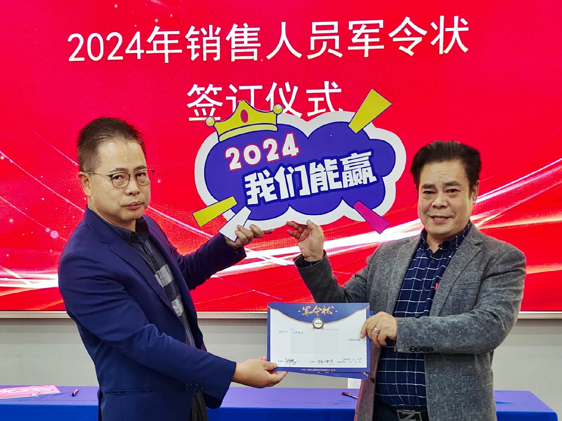 2024公司年度战略目标确立,言出必行,使命必达,国际/国内销售团队为了共同的目标开始军令状签约仪式。一纸军令状,是球速体育科技与销售人员的双向承诺,是压力,更是动力。是不破楼兰终不还的决心,更是春风得意马蹄疾,一日看尽长安花的期待。