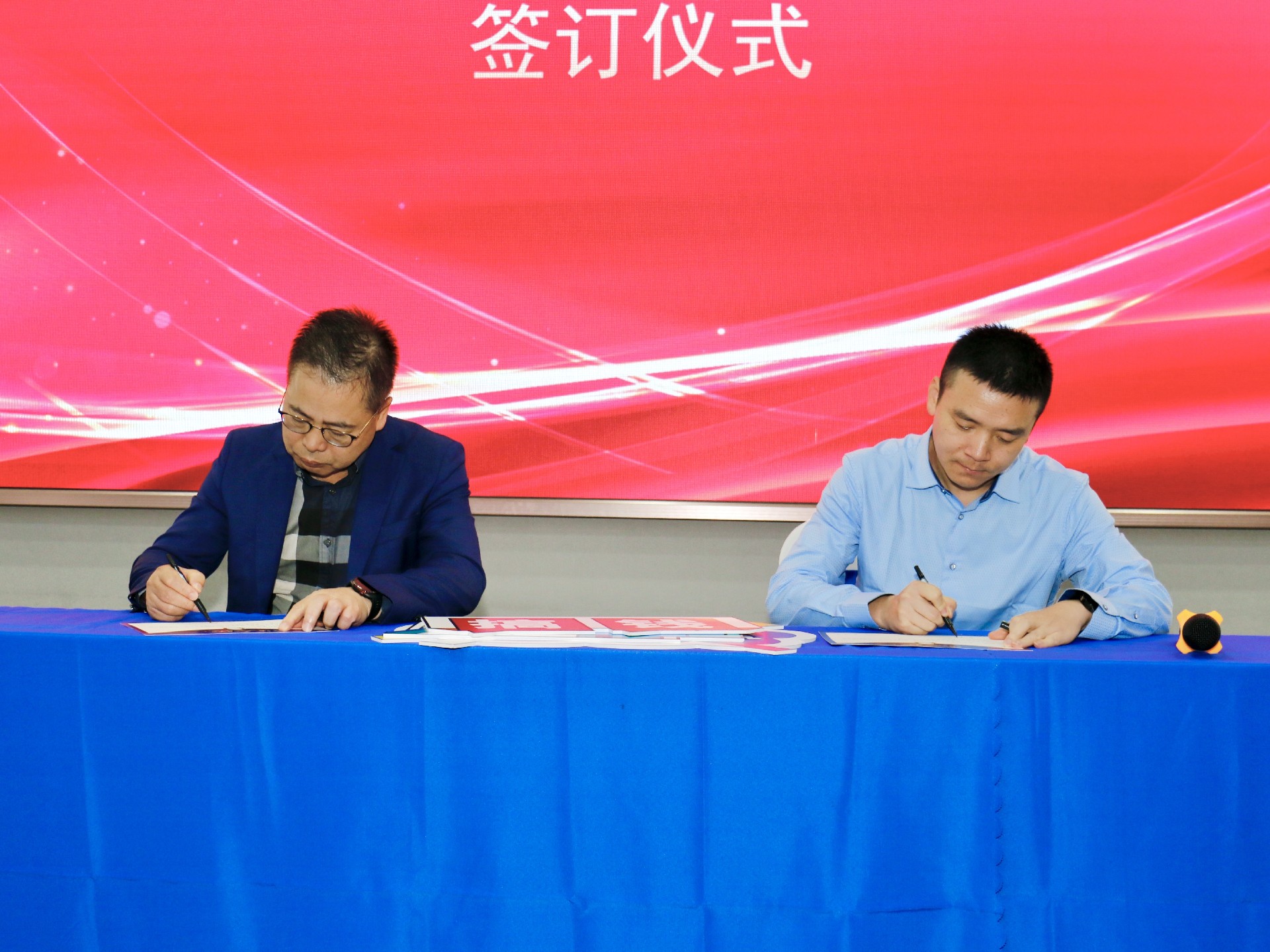 球速体育科技董事长林总与国内营销中心负责人刘洋签约