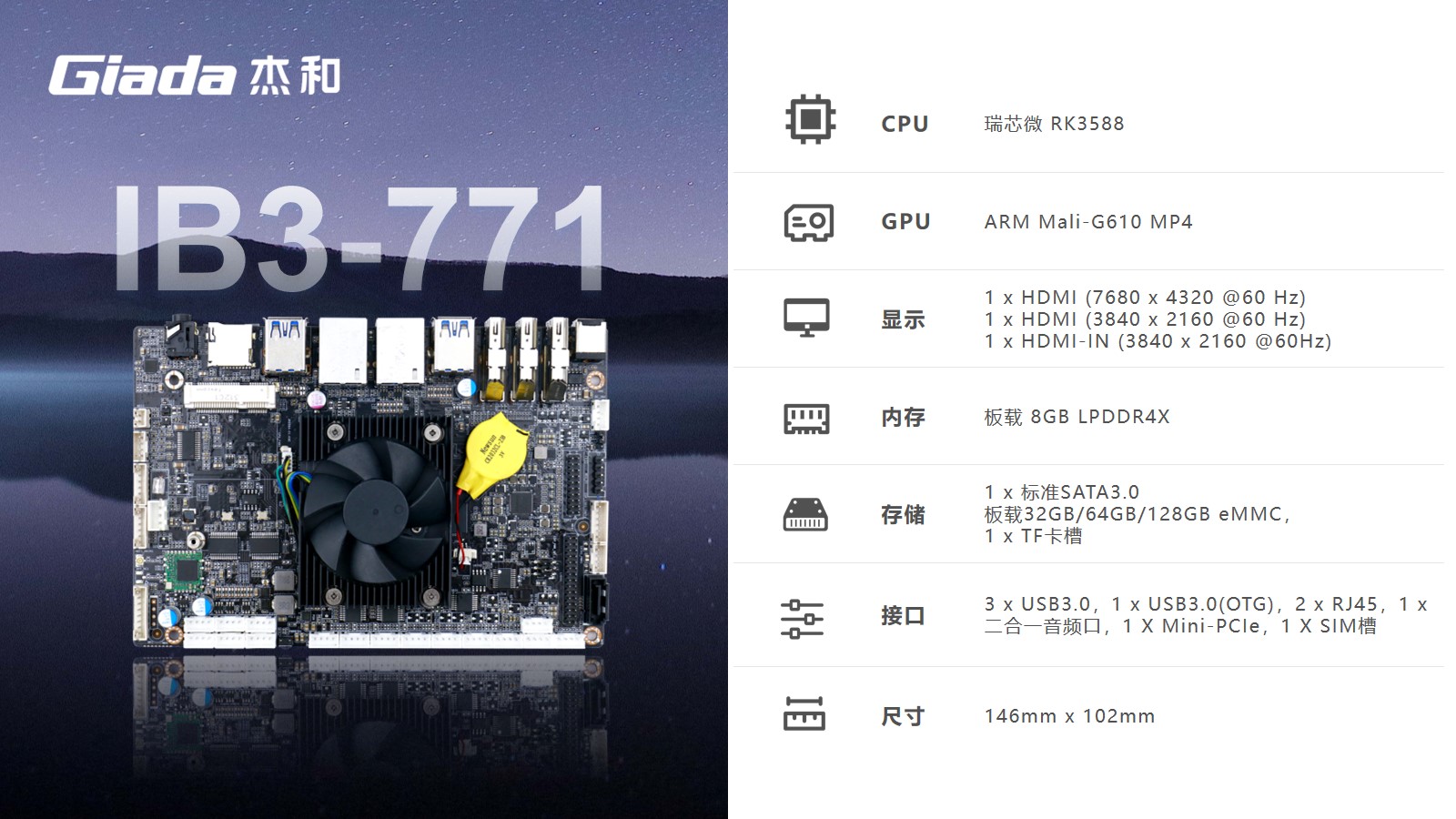 球速体育科技嵌入式主板IB3-771是8K人工智能主板,拥有轻算力的它可用于机器人、边缘计算、智能NVR、智能汽车、智慧大屏、AR/VR、ARM PC、智能自助终端等领域,还可用于监控、工业、餐饮、智能交通、文娱产业等对超高清视频需求旺盛的行业;