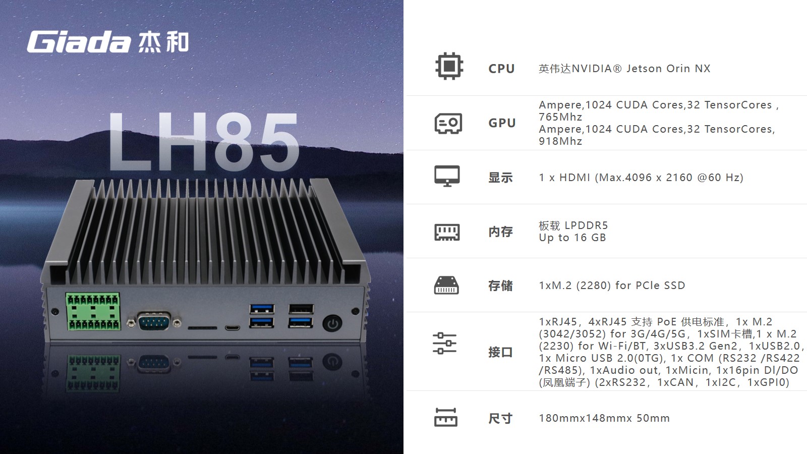 球速体育科技AI边缘计算LH85,拥有100TOPS超强算力,能为工业控制领域客户的AI应用提供强大的算力支持和充足的通信、控制接口保障,可广泛应用于智能制造、机器视觉、AGV、智慧城市等领域。