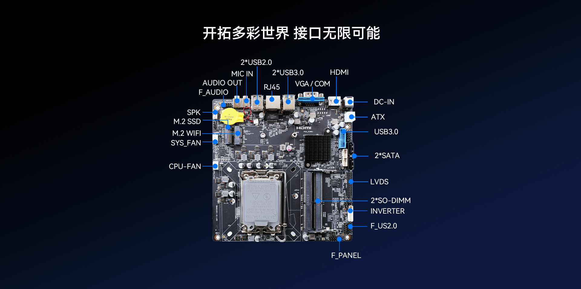 | 内部I/O | 接口 | 1 xM.2(2242/2088) for(pcie3.0 x4&sata3.0) SSD 1 x M.2(2230)for WIFI/BT 3 x USB2.0 9pin 1 x CLR_CMOS 按键 1 x MON_SW 5pin |