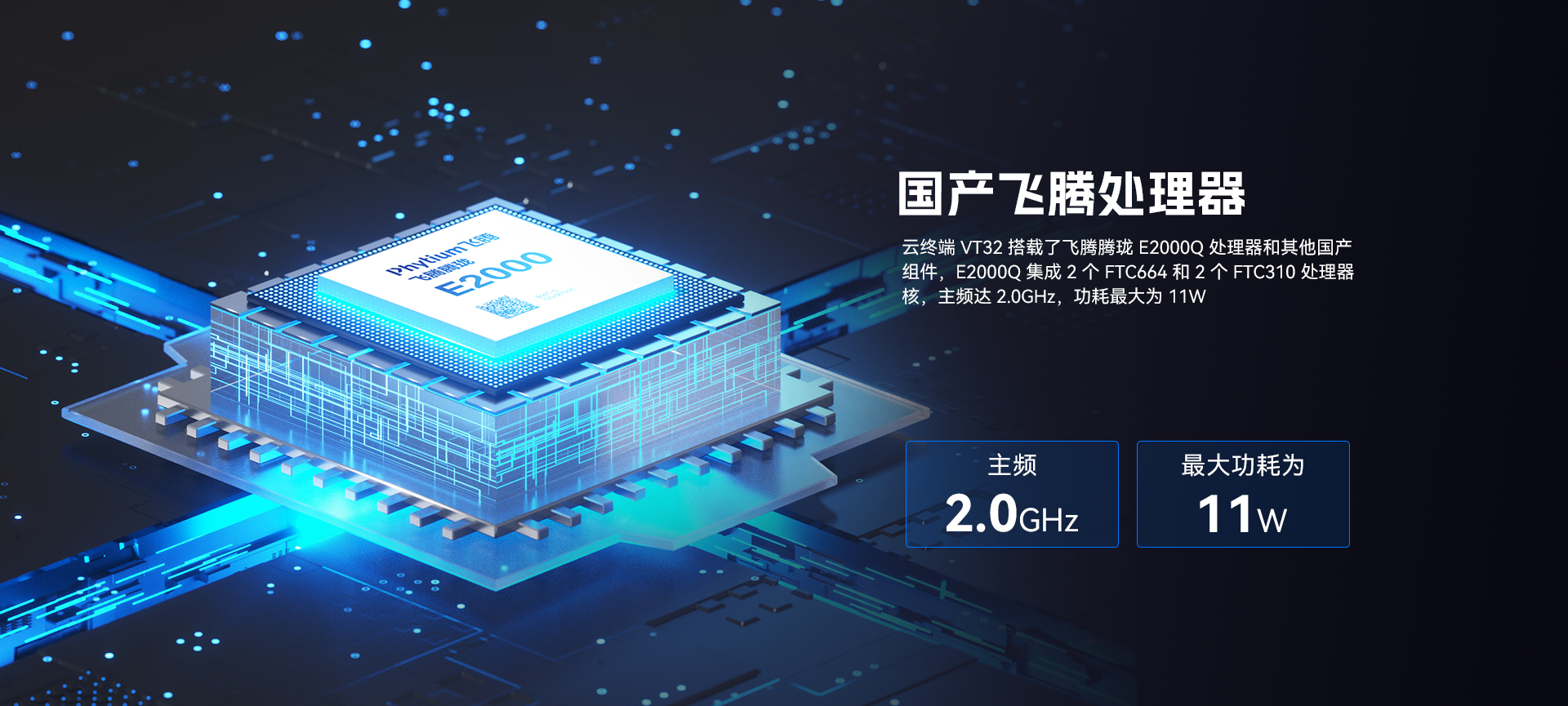 | 处理器 | CPU | 采用国产飞腾腾珑E2000Q处理器,主频2.0GHz |
